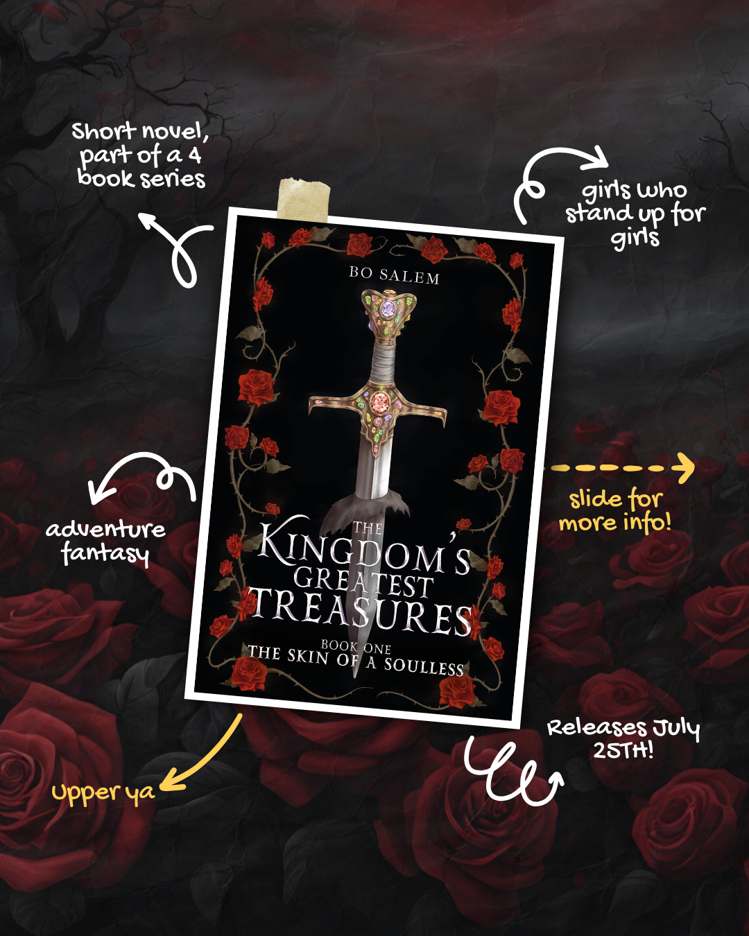 A fantasy adventure that is part of a four book series. Three friends have to save a little girl from dying by creating a potion. They need four ingredients from four different kingdoms to create it. Follow each heist in a different book!
